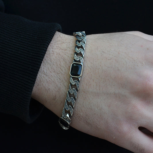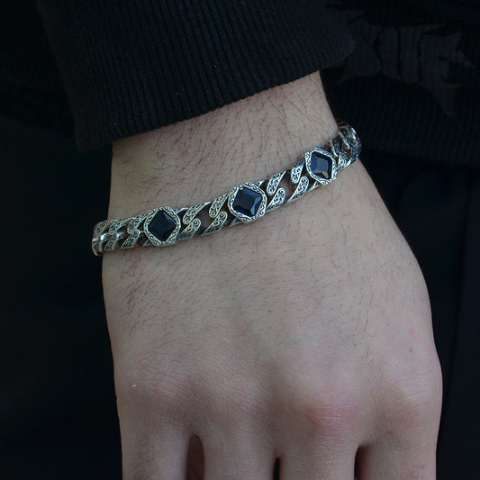 tennis bracelet for women pure silver 925k plated by platinum (black stone)