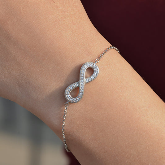 SILVER BRACELET FOR WOMEN Infinity WITH WHITE ZARCON