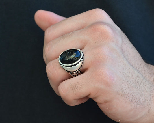RING FOR MEN SILVER 925K BLACK STONE ONIX