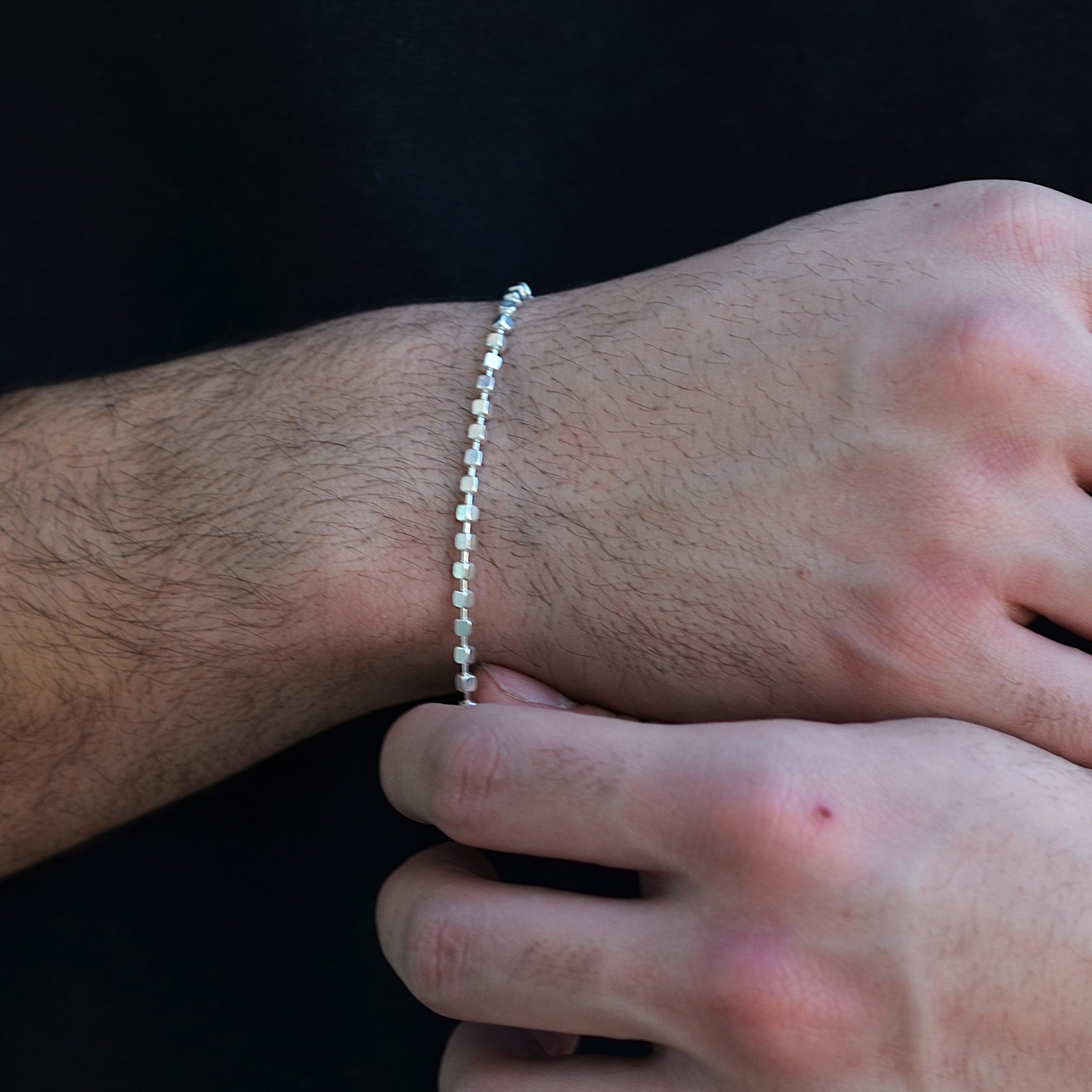 Crafted from genuine Italian 925 sterling silver, this men's bracelet combines durability with refined style. Accented by polished Onyx stones, it offers a striking contrast that enhances its sophisticated, masculine appeal. The high-quality materials ensure lasting shine and resilience, making it an ideal accessory for both everyday wear and special occasions.
