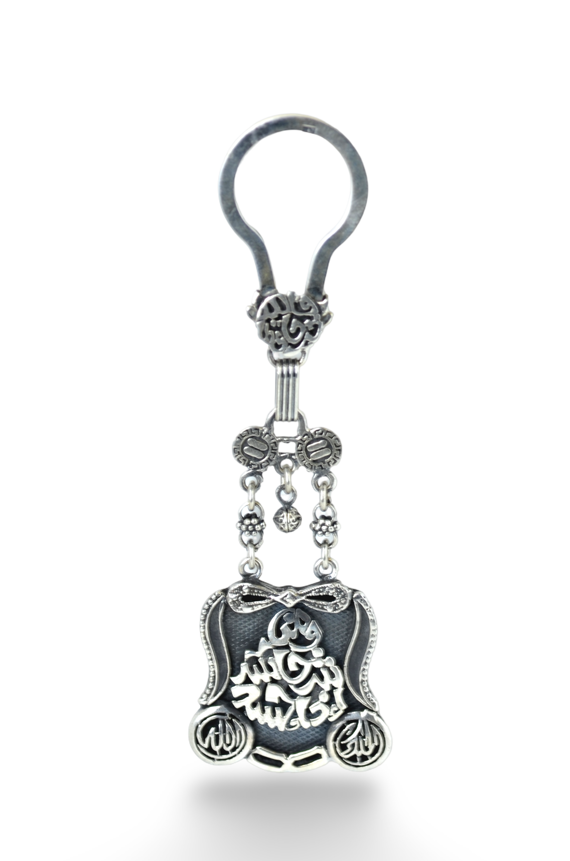 This elegant silver keychain features the powerful inscription "ومن شر حاسدا اذا حسد," offering a meaningful symbol of protection against envy. Crafted with precision, it combines aesthetic appeal with spiritual significance, making it a thoughtful accessory for daily use or a meaningful gift. Durable and stylish, this keychain serves as a constant reminder of safeguarding oneself from negative energies.
