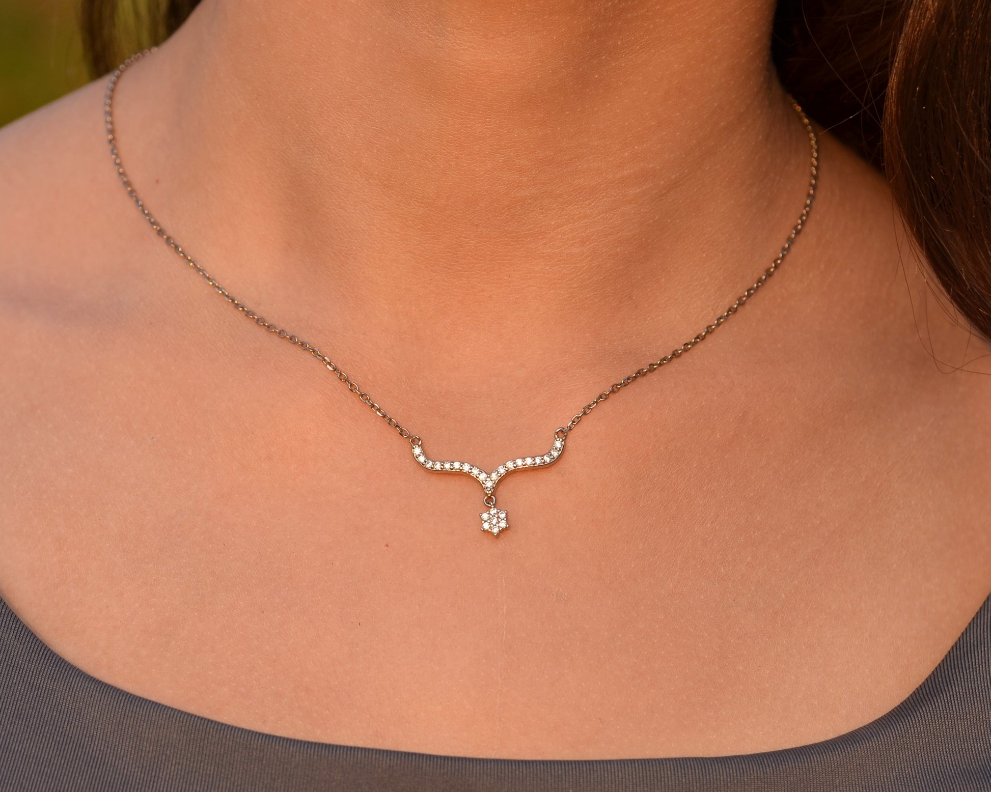 This necklace for women is made from pure silver 925k and plated with platinum. It offers a sophisticated and timeless look, perfect for any occasion. The purity of silver ensures long-lasting shine, while the platinum plating adds durability. Elevate your style with this elegant and luxurious necklace.
