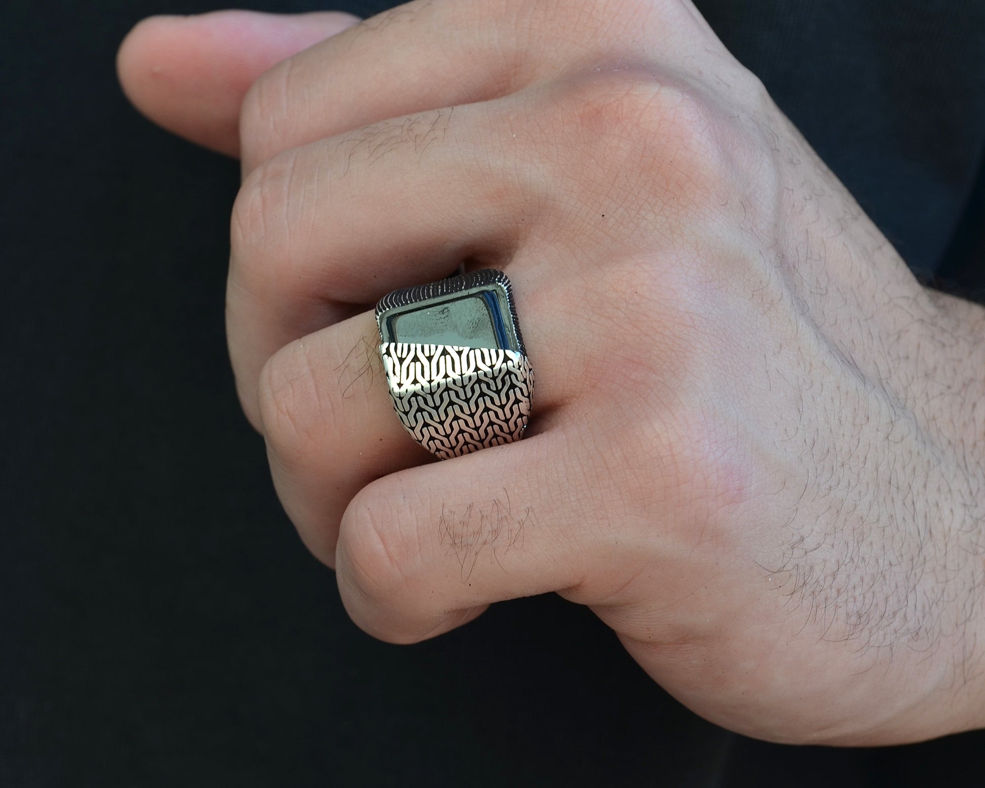 This men's ring is crafted from high-quality 925 sterling silver, featuring a sophisticated black-colored stone that adds a refined touch. Designed for durability and style, it offers a sleek, masculine look suitable for everyday wear or special occasions. The polished silver complements the dark stone, creating an elegant contrast that enhances any outfit with subtle confidence.