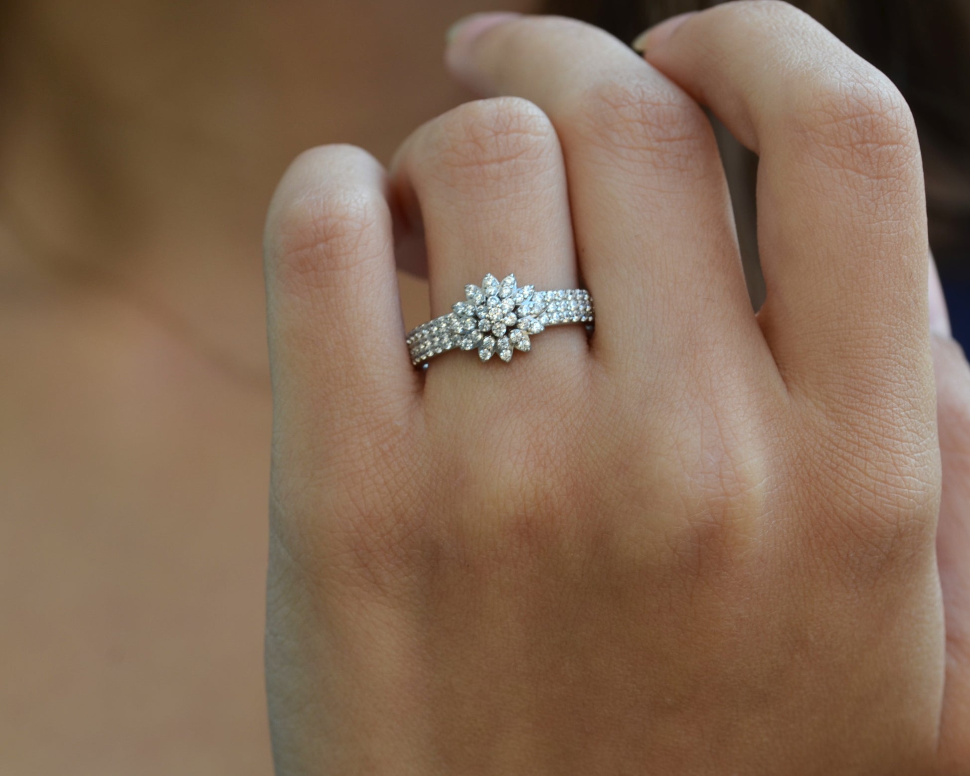This exquisite women's ring is crafted from genuine 925 sterling silver and elegantly plated with platinum for enhanced durability and a brilliant shine. Designed to offer both sophistication and lasting quality, this piece provides a luxurious look while resisting tarnish. Ideal for everyday wear or special occasions, it combines classic style with expert craftsmanship.