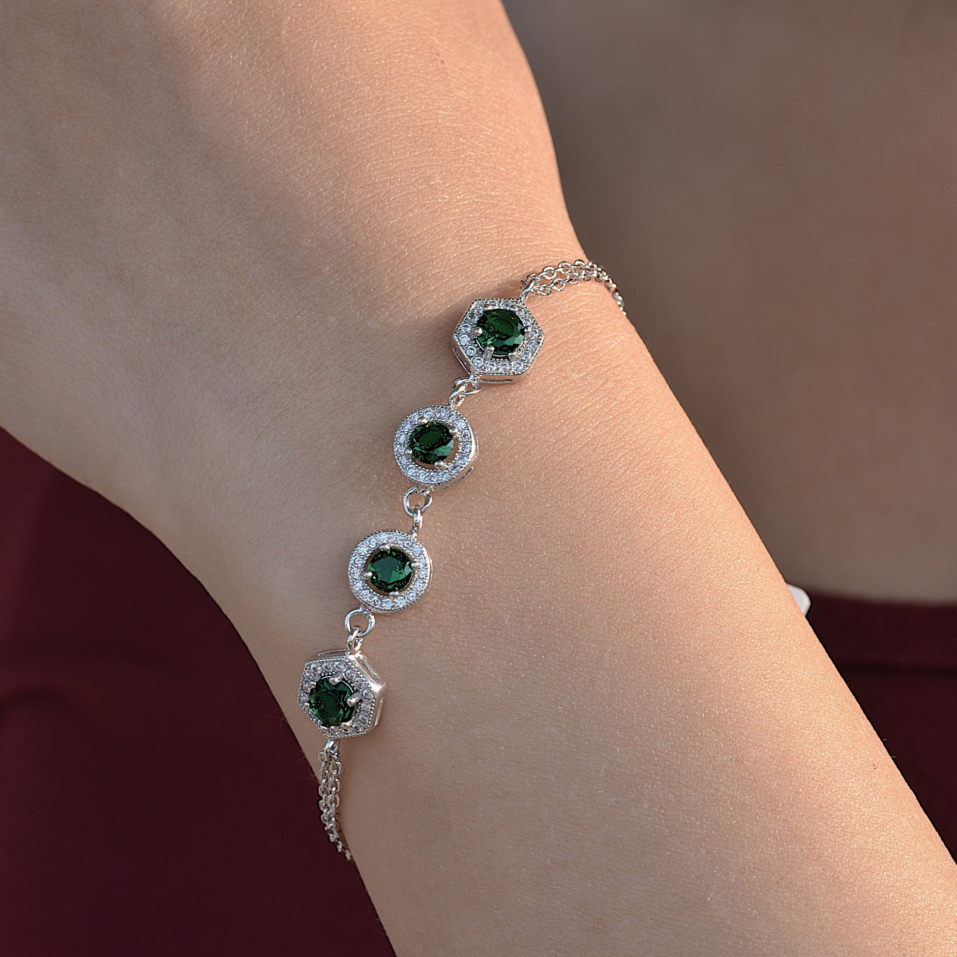 SILVER BRACELET FOR WOMEN GREEN STONES